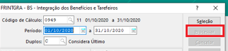 Problema: Para determinados usuários, ao abrir a tela de Integração dos Benefícios (FRINTGRA) e selecionar alguns cálculos em algumas empresas o botão "Processar" ficava desabilitado
